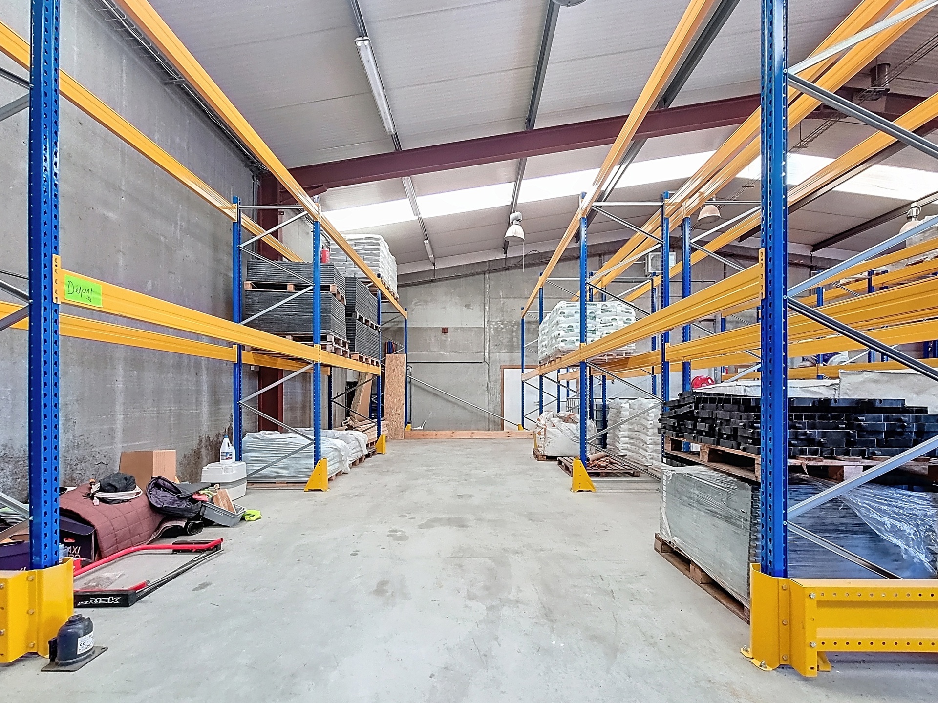Entrepôt de ± 300 m² (17,5 m x 17,5 m) avec belle hauteur sous plafond (5m de haut), idéal pour le stockage, l’atelier ou la logistique