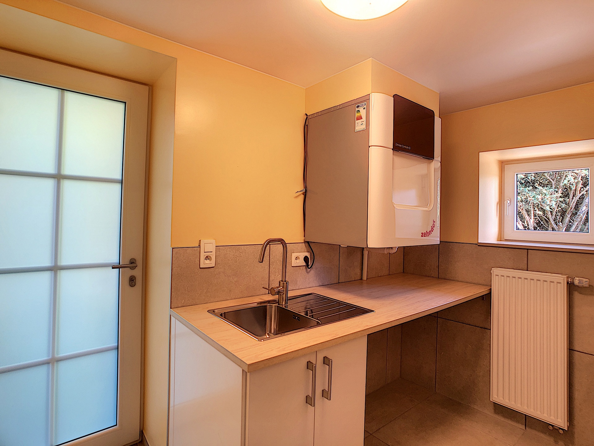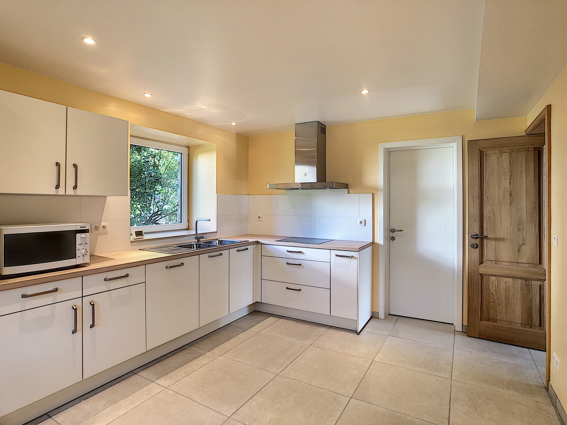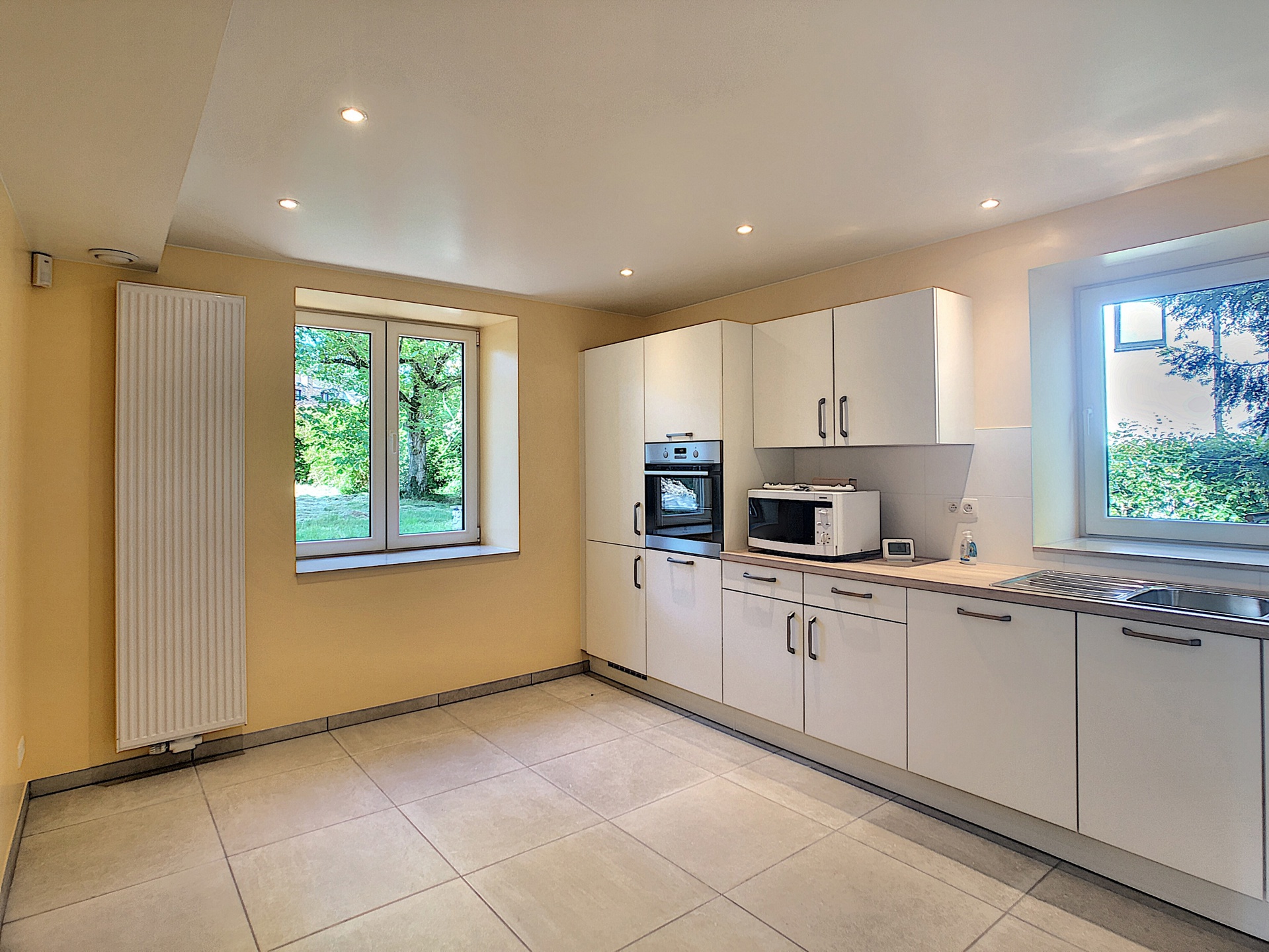 • Rez-de-chaussée : grand hall d’entrée – lumineux séjour avec poêle/insert – cuisine super équipée (frigo, congélateur, hotte, taques, lave-vaisselle) – buanderie avec évier et emplacement pour machine à laver.
