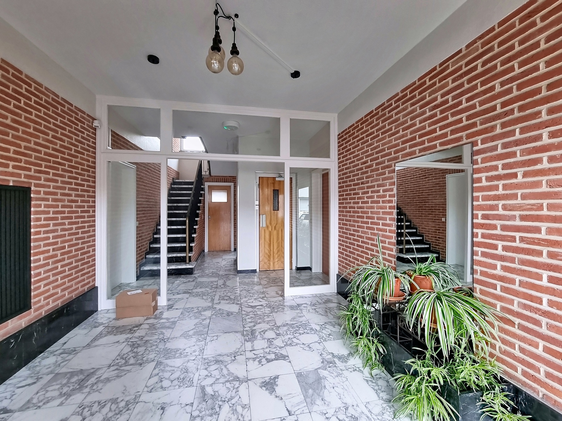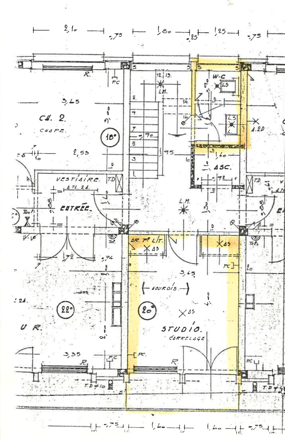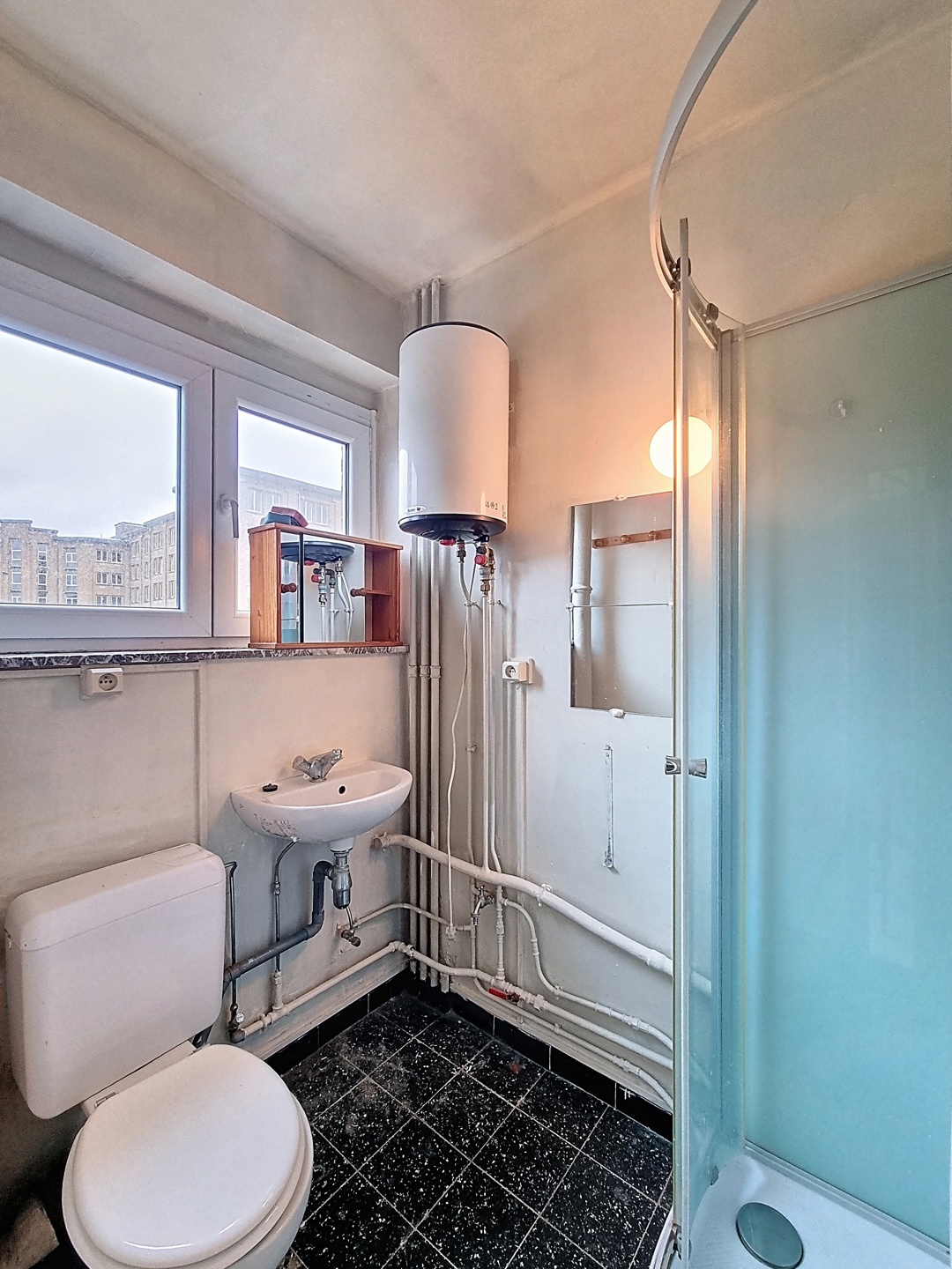 Comprenant : la chambre elle-même avec un balcon de ± 4 m² et une petite pièce sanitaire privée sur le palier avec WC, lavabo et douche.