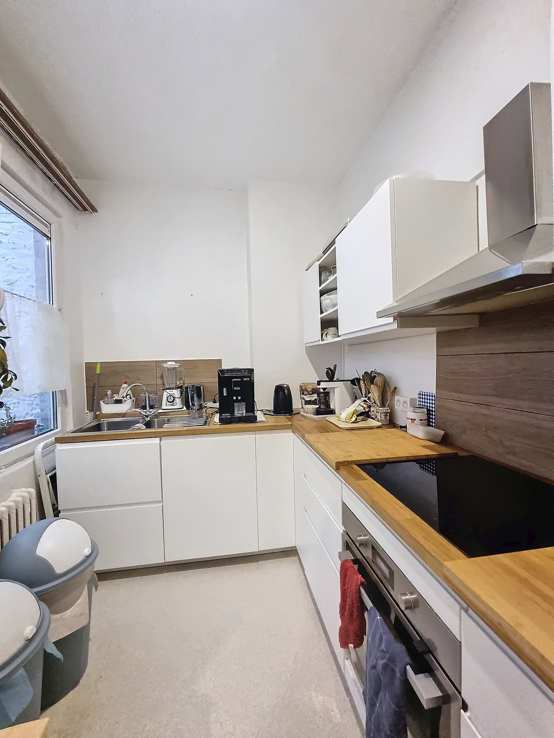 Cet appartement de 87m² se compose comme suit : hall d'entrée avec WC séparé - cuisine équipée - séjour - 2 chambres - salle de bain avec baignoire et lavabo.